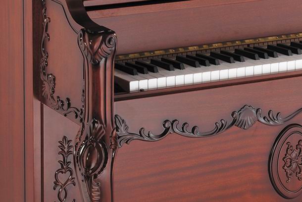 介绍: 全身精致雕花,萦绕在华贵的世界。击弦机、键盘严格遵照“三点一线”的设计理念,拥有灵敏的传动性能,能够充分的传递手指上的细微动作键盘逐键测重配铅,再经过特殊的工艺调整,弹奏更加舒适流畅。击弦机是由德国引进的是世界最先进的全套精密设备加工而成,申达针和申达呢由法国进口,使转动部分更加灵活可靠。